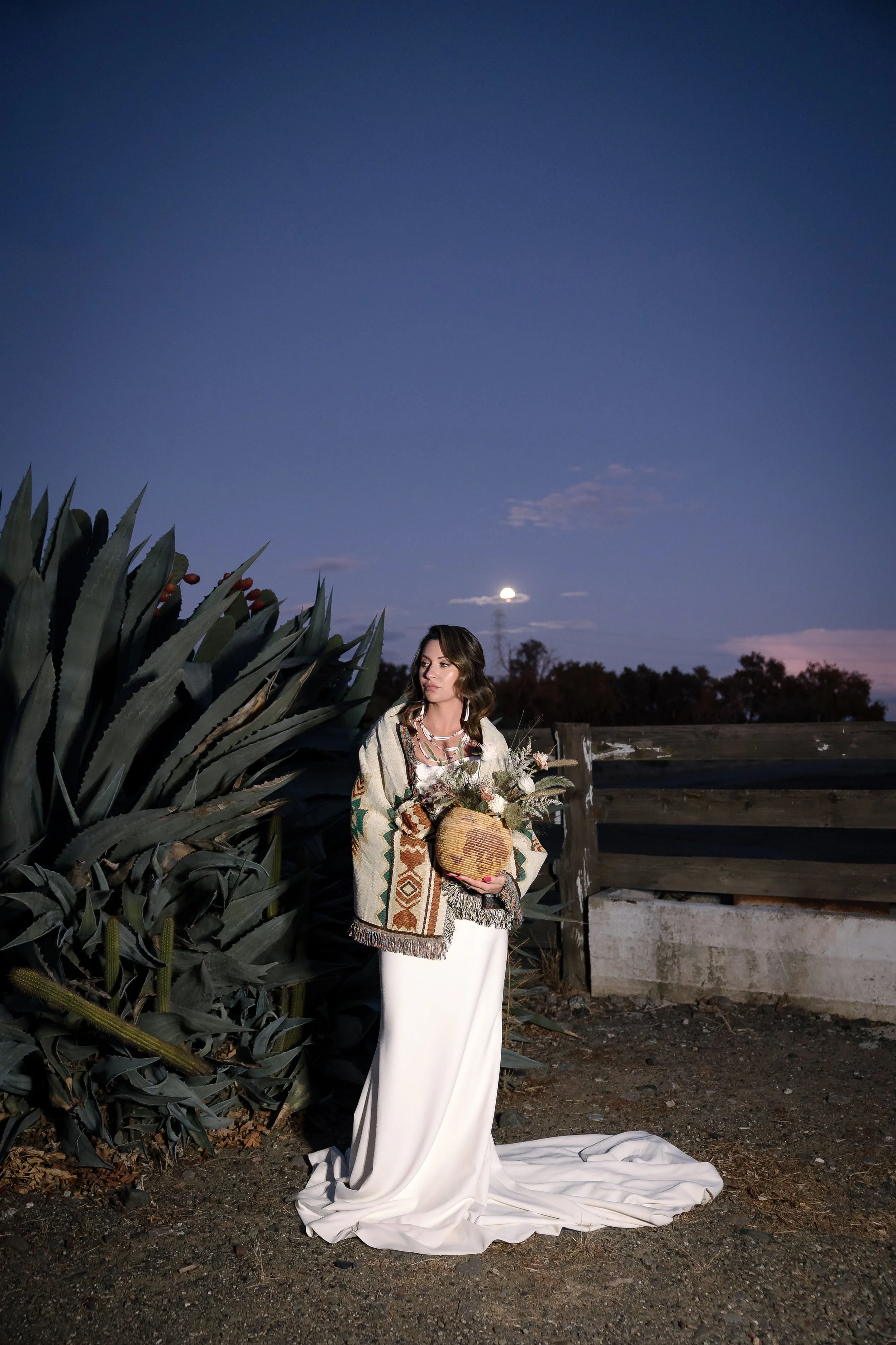 That dream became a reality when Michelle at Solo in Winters, CA, approached me with an opportunity to collaborate. She connected me with Britanie, a model of Native descent, and Sky, a talented Native singer and officiant. Their guidance was invaluable, providing insights and connections that allowed me to respectfully feature elements of Native American wedding traditions.
